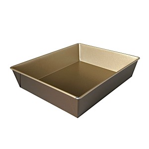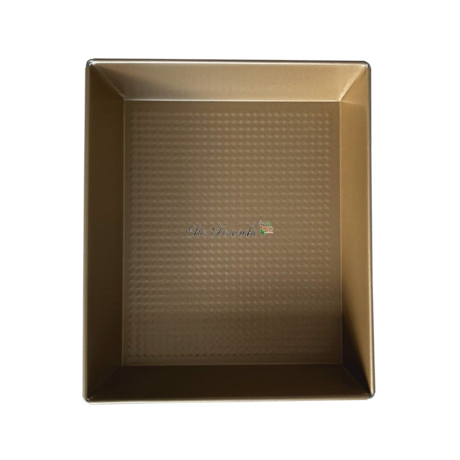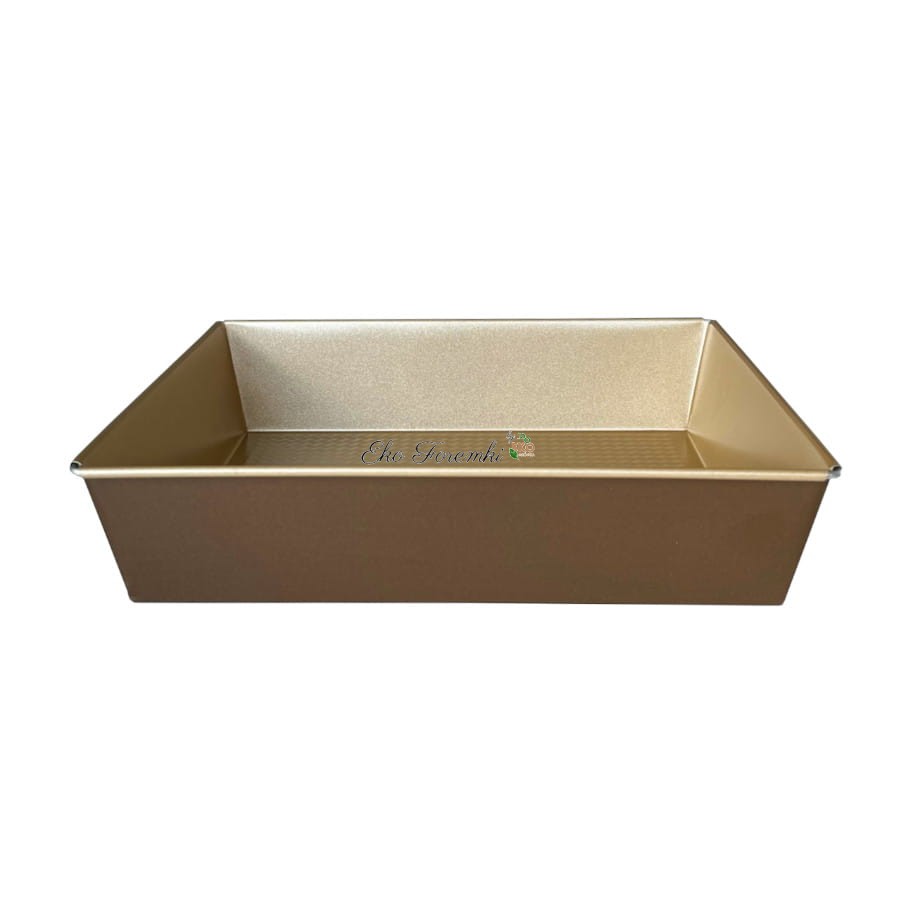 Czekoladowa forma do pieczenia ciasta. Prostokątna, brązowa foremka na ciasto typu brownie. Złota blacha do pieczenia pokryta została podwójną powłoką nieprzywierającą. Blachy i formy do wypiekania ciast. Kod produktu 3177