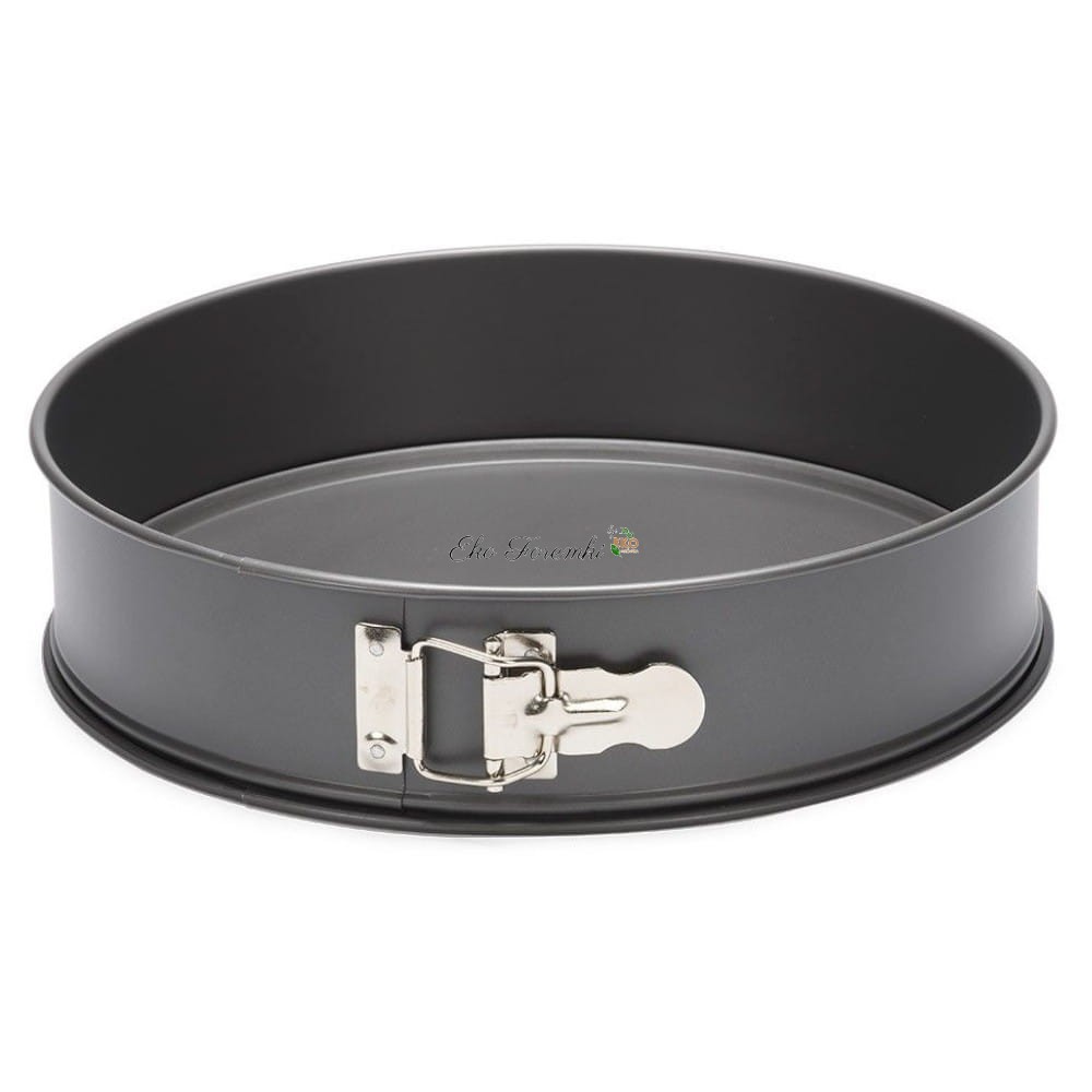 Okrągła forma do pieczenia to zdecydowanie "must have" w kuchni każdego miłośnika pieczenia. Upieczesz w niej klasyczny biszkopt, wykonasz sernik na zimno, a nawet upieczesz tartę. Tortownica posiada specjalną powłokę, która zapewnia nieprzywieranie ciast do jej formy. Należy pamiętać, aby nie używać ostrych przedmiotów do wyjmowania ciasta. Niezbędne będzie użycie drewnianych bądź silikonowych przyborów, takich jak na przykład szpatuła z ząbkami, dzięki której od razu pokroisz ciasto i przeniesiesz porcję na talerzyk.