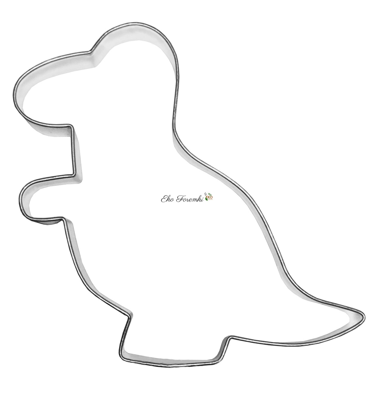 Foremka dinozaur T-REX w sklepie internetowym. Oferowany wykrawacz w kształcie dinozaura z przeznaczeniem do wykrawania ciastek i pierników. Foremka dinozaur lub smok nadaje się również do wycinania wzorów z mas cukierniczych oraz masy marcepanowej. Wykrawacz dinozaura lub smoka znajdzie zastosowanie także przy wycinaniu kształtów z masy solnej lub porcelanowej. Również wykrawanie dinozaurów i smoków z ciasta lub gliny ceramicznej będzie łatwe i precyzyjne. Do dzieła! Niech smoki i dinozaury z naszej oferty pobudzą Cię do działania i stworzenia piernikowego jurajskiego świata. Kod produktu 0199