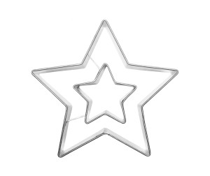 Foremka w kształcie pięcioramiennej gwiazdki z wbudowaną mniejszą gwiazdką pozwala tworzyć pierniczki z charakterystycznym okienkiem. Idealna do ciastek z dziurką, przez którą przewleczesz tasiemkę.