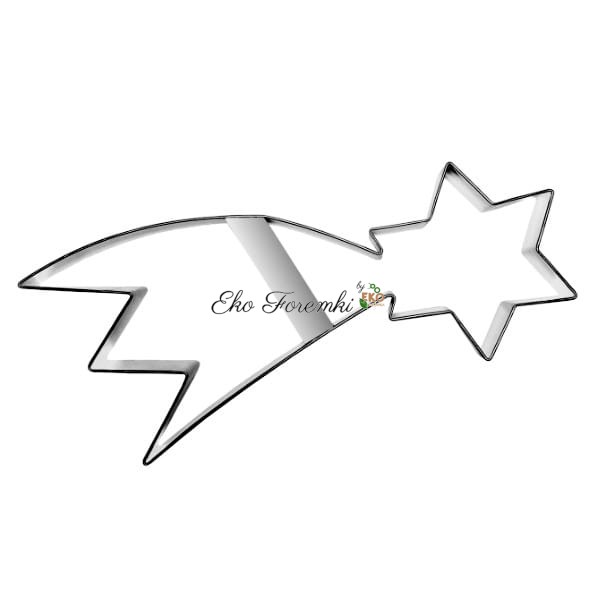 Duża foremka w kształcie komety o długości 17,7 cm to propozycja dla osób, które lubią robić efektowne, dekoracyjne ciasteczka na Boże Narodzenie. Dzięki swojej rozpiętości i wydłużonej formie znakomicie sprawdzi się jako ozdoba stołu lub jadalna zawieszka na choinkę. Foremka została wykonana z trwałej stali ocynowanej, co zapewnia dobrą jakość wykrawania i łatwość utrzymania w czystości.