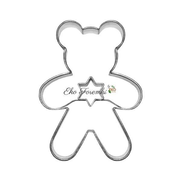 Foremka została wykonana z trwałej stali nierdzewnej, która gwarantuje długowieczność i precyzję wykrawania. Ostra krawędź poradzi sobie zarówno z piernikowym, jak i kruchym ciastem, a także z masą cukrową czy marcepanową. Ciasteczka w kształcie misia z gwiazdką w środku możesz przekładać dżemem lub kremem, uzyskując efekt ciastek z okienkiem. W naszym sklepie znajdziesz również inne wersje tego uroczego misia – z serduszkiem lub klasyczne, bez dodatków.