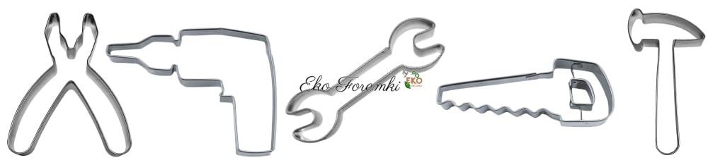Zrób niespodziankę swojemu majsterkowiczowi. W dniu jego święta podaruj mu własnoręcznie wykonane ciasteczka w kształcie narzędzi. Masz w czym wybierać bo nasza oferta proponuje Ci śrubokręt, obcęgi, ręczną piłę, młotek oraz płaski klucz i wiertarkę. Łasuchy mogą teraz bezpiecznie bawić się narzędziami jednocześnie przygryzając elementy wkrętaka. Życzymy szalonych pomysłów i udanych wypieków!