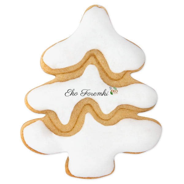 Foremka w kształcie choinki do ciasteczek z odciskiem śniegu – idealna do dekorowania odciśniętego wzoru lukrem.