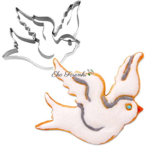 Foremka gołąb do wykrawania ciastek, pierników lub masy solnej. Wykrawacz w kształcie gołębia lub innego ptaszka idealnie nadaje się do wycinania wzorów z mas cukierniczych oraz masy marcepanowej. Wykrawane gołębie z masy solnej lub porcelanowej będą wspaniałą zabawą dla dzieci. Wykrawacze gołębi lub małych gołąbków oraz innych ptaszków z naszej kolekcji, sprawdzą się także przy wycinaniu wzorów z gliny ceramicznej. Do dzieła! Niech mały ptak, ptaszek lub duże ptaki z naszej oferty pobudzi Cię do stworzenia cudownych piernikowych wypieków lub cukrowych dekoracji. gołąbek, gołębica, turkawka