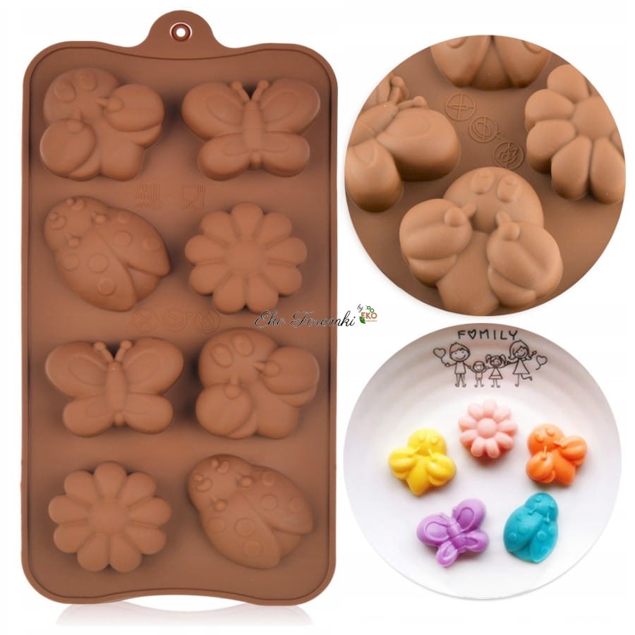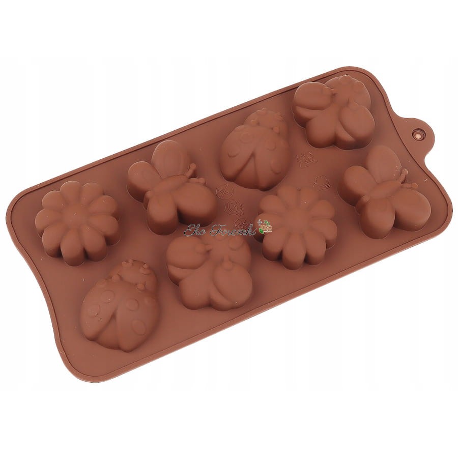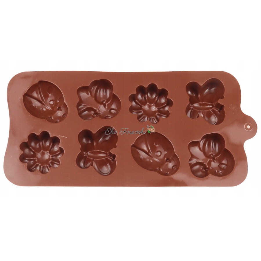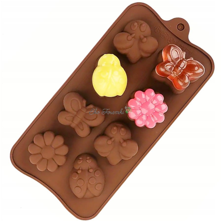 Prostokątna foremka do modelowania, pieczenia i zamrażania. Forma na biedronki. Foremka na pszczółki. Silikonowa forma do czekoladowych pralinek w kształcie biedronek, pszczół, motyli i kwiatów. Forma na motylki z czekolady. Foremka na kwiatuszki. Silikonowa forma do czekoladek, ciastek i masy cukrowej. Blachy i formy do wypiekania ciast. Kod produktu 3988