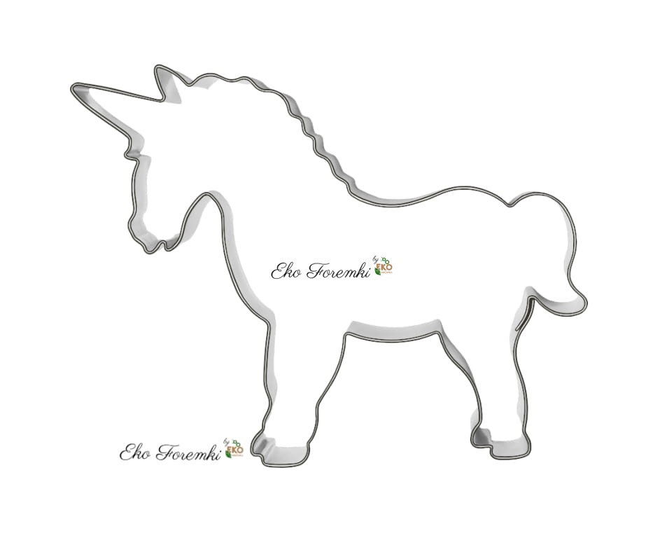 Foremka jednorożec do wykrawania ciastek, pierników lub masy solnej. Wykrawacz w kształcie jednorożca idealnie nadaje się do wycinania wzorów z mas cukierniczych oraz masy marcepanowej. Wykrawane jednorożce z masy solnej lub porcelanowej będą wspaniałą zabawą dla dzieci. Wykrawacze jednorożców z naszej kolekcji, sprawdzą się także przy wycinaniu wzorów z gliny ceramicznej. Do dzieła! Niech jednorożec oraz głowa jednorożca z naszej oferty pobudzi Cię do stworzenia cudownych piernikowych wypieków lub wspaniałych cukrowych dekoracji.