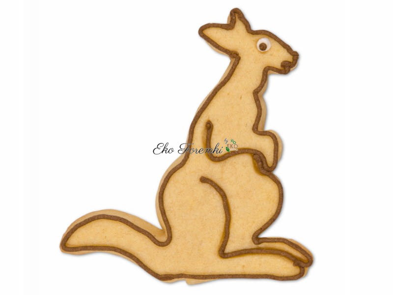 Foremka w kształcie kangura z przeznaczeniem do wykrawania ciastek i pierników. Wykrawacz kangur idealnie nadaje się również do wycinania wzorów z mas cukierniczych oraz masy marcepanowej. Wykrojniki kangurów znajdą zastosowanie także przy wycinaniu kształtów z masy solnej lub porcelanowej. Wykrawane kangury z ciasta lub gliny ceramicznej to łatwe i przyjemne zajęcie. Do dzieła! Niech wykrawacze w kształcie dzikich zwierząt natchną Cię do stworzenia piernikowego safari. Dzikie zwierzęta z kruchego ciasta będą wspaniałym prezentem dla Twoich dzieci. kod produktu 2076