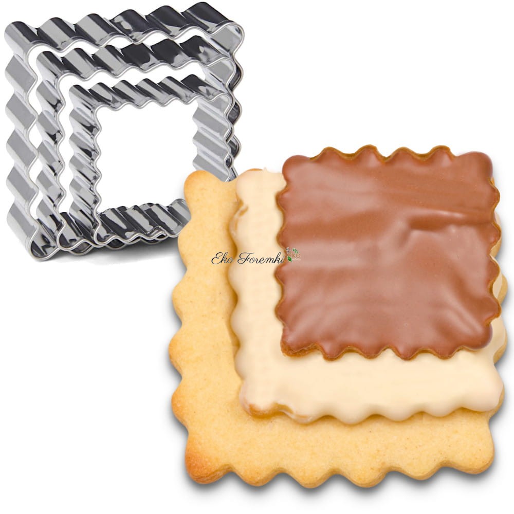 Foremki w kształcie karbowanych kwadratów do ciastek i pierników