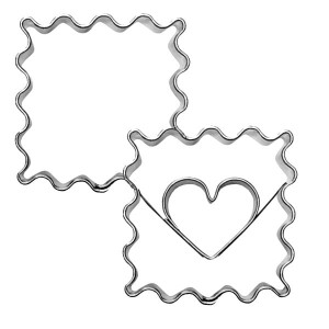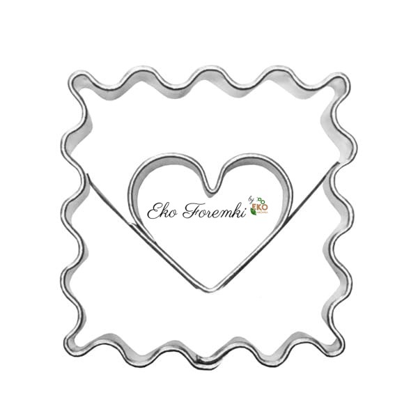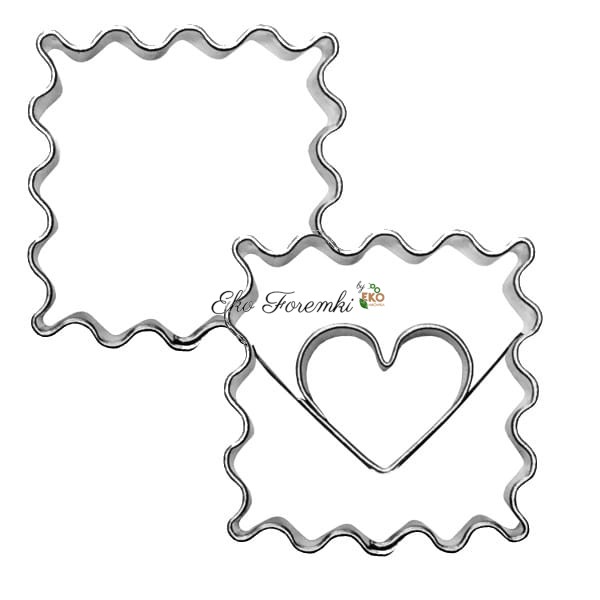 Foremki do ciastek - karbowane kwadraty z sercem 3,3 cm