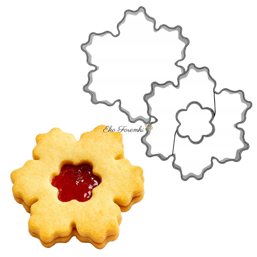 Foremki w kształcie śnieżynek do ciasteczek przekładanych marmoladą