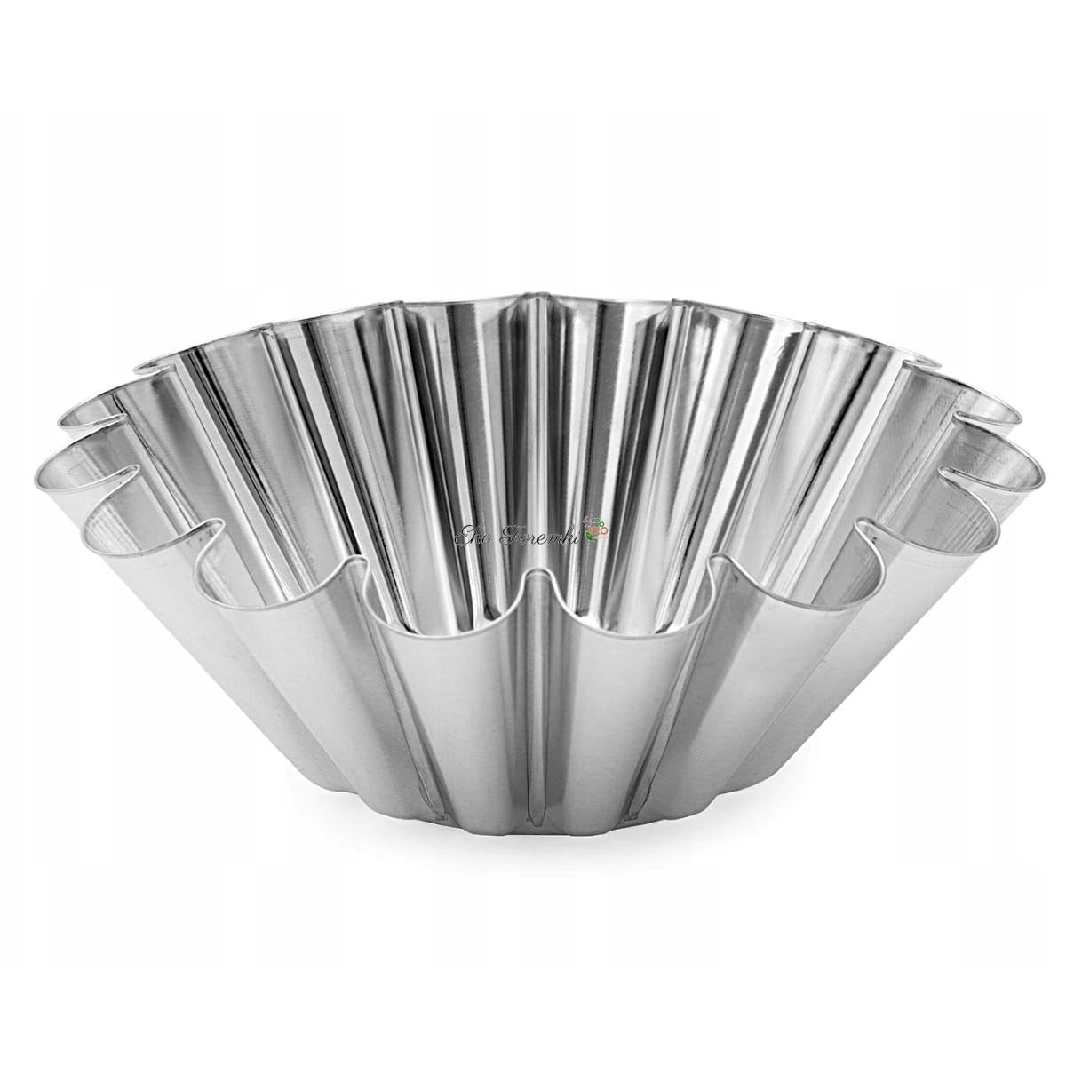 Metalowa forma na wysoką, małą babkę. Foremka na babkę. Karbowana srebrna forma do babki z powłoką ocynowaną. Piaskowa babka z formy. Foremki do pieczenia piaskowych babek. Piaskowa babeczka. Blachy i formy na babki. Wielkanocna babka. Mała forma do babki na Wielkanoc. Kod produktu 3750.