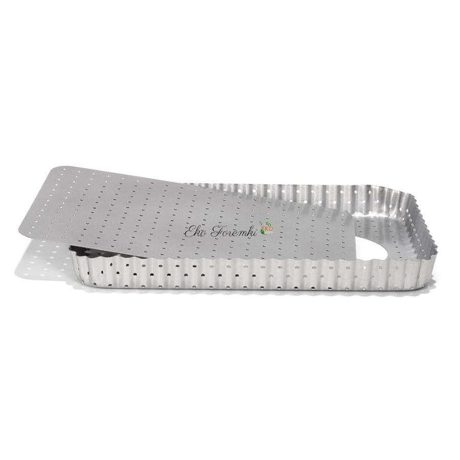 Prostokątna, perforowana forma na tartę to praktyczne narzędzie kuchenne, które umożliwia łatwe wyjmowanie wypieków i ich estetyczne serwowanie.