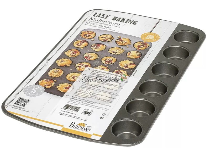 Blacha do pieczenia mini muffinek, cudownie pachnących, ciepłych i małych ciasteczek. Niezależnie od tego, czy jest to małe słodkie spotkanie, czy duże i obfite przyjęcie - dzięki formie do muffinek, możesz w mgnieniu oka przygotować 24 pyszne przysmaki w mini formacie na każdą okazję.