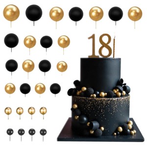 Kulki dekoracyjne na tort czarne i złote na piku 27 sztuk