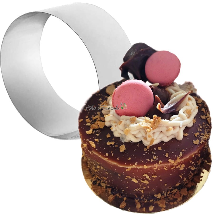 Obręcz do formowania potraw i deserów. Za pomocą foremki wytniesz okręgi z wysokiego ciasta lub przygotujesz pyszne piernikowe ciasteczka. Uformujesz również ugotowane potrawy oraz wykroisz ciekawe kształty w deserach. Wysoka foremka kółko, okrąg posłużyć może również do podania ugotowanych ziemniaków, kaszy lub ryżu w ciekawym kształcie kółka, okręgu. Semifreda do wykrawania kółek, kółeczek w galaretach, lodach i innych deserach. Okrągła forma do tortów. Formy na tort bez dna. Tortownica, tortownice, torty. Foremka do potraw, obręcz do formowania tortów, ranty na sernik, rant do pieczenia ciasta biszkoptowego. EAN 5904165002273 kod produktu 1794