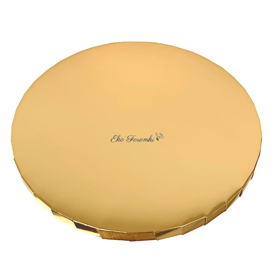 Podkład pod tort w złotym kolorze. Okrągła podkładka pod ciasta i torty. Gruba podstawa pod ciężki urodzinowy tort.