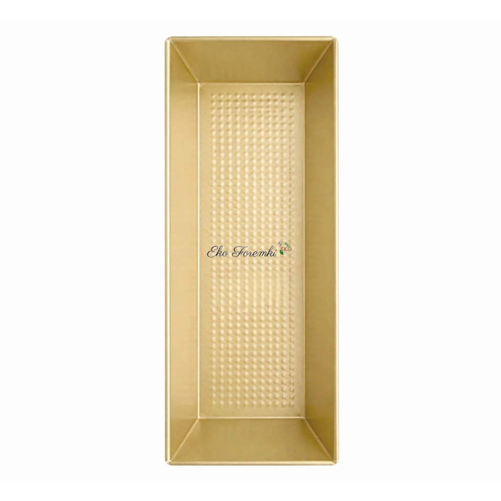 Podłużna keksówka 30 x 11 cm z powłoką non-stick i fakturowanym wnętrzem ułatwia pieczenie oraz wyjmowanie wypieków bez uszkodzeń. Sprawdzi się zarówno do chleba, pasztetu jak i klasycznych ciast.