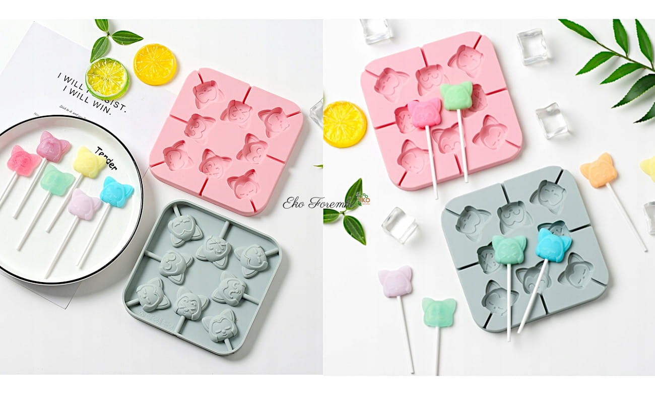 Silikonowa forma w kształcie kotów to świetny sposób na stworzenie słodkich i uroczych smakołyków dla każdego miłośnika tych zwierząt. Posiada 8 wgłębień, dzięki czemu można zrobić kilka słodkości naraz. Każdy z kotków ma szczegółowe detale, co sprawia, że są one nie tylko pyszne, ale także urocze. W zestawie znajdują się również patyczki, które ułatwiają ich wyjmowanie lizaka z formy i trzymanie podczas jedzenia. Foremka jest łatwa w czyszczeniu i nadaje się do wielokrotnego użycia, co sprawia, że można tworzyć kolejne porcje smakołyków bez konieczności kupowania nowej formy.