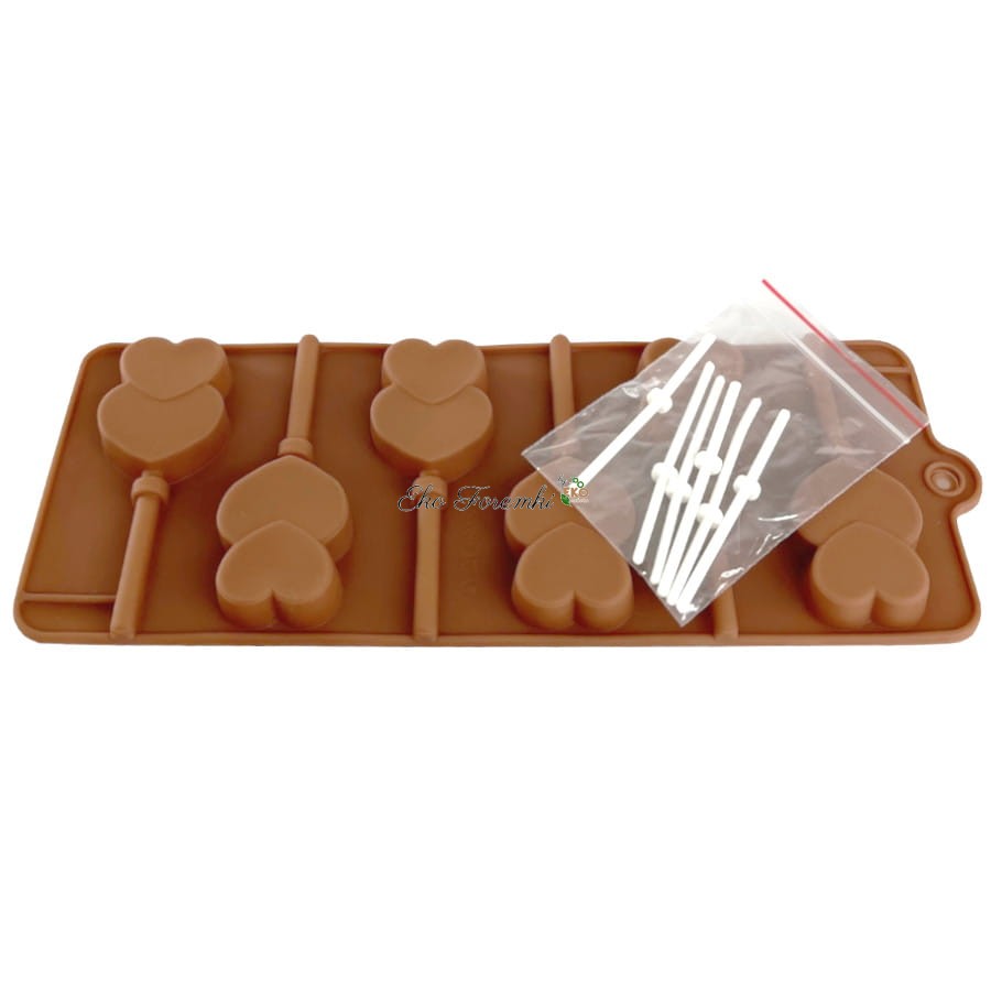 Silikonowa forma na lizaki serca + patyczki