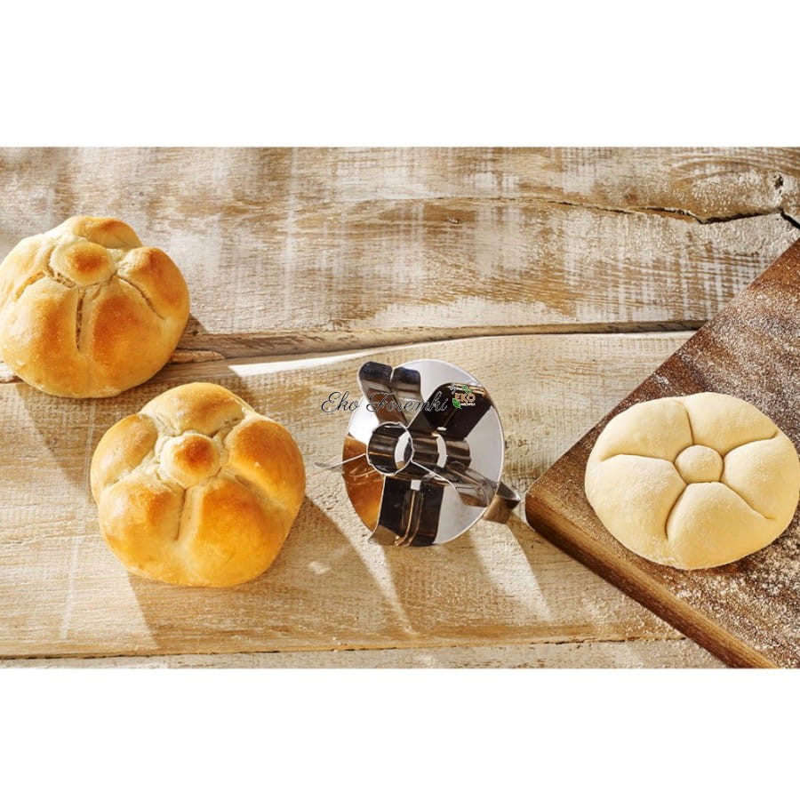 Przyrząd kuchenny do wzorów w bułkach. Stempel do bułek wykonany został ze stali nierdzewnej. Stempel pozostawia gwiazdki na bułce. Nierdzewna gwiazdka do wycinania ciasta. Gwiazda wzorek na kajzerce do kajzerki kajzerek bułek. Kod produktu 3525
