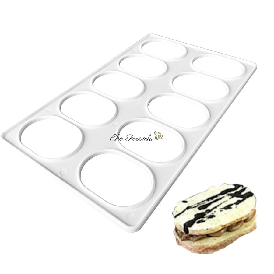 Foremki do zrobienia dużych owalnych bez i biszkoptów. Szablon na ciastka do kawy. Okrągłe oczka, dzięki którym stworzysz idealne duże okręgi z biszkoptu lub bezy. Kod produktu 3169