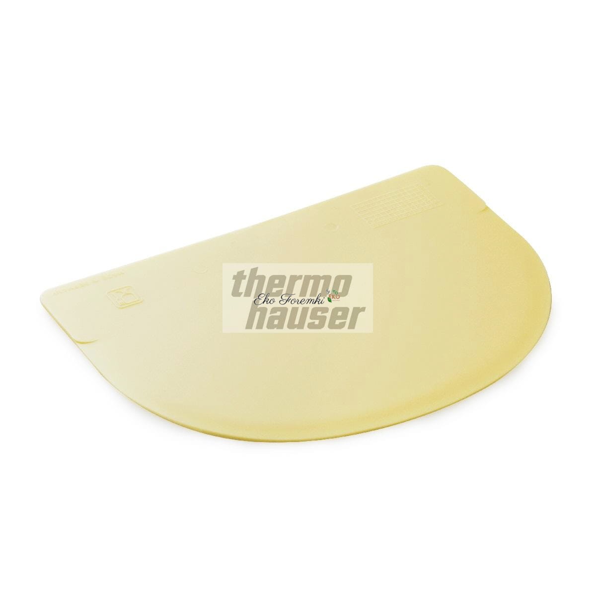 Profesjonalny skrobak cukierniczy w kolorze kości słoniowej posiada wysokiej jakości krawędź zgarniającą, która ułatwia pracę każdemu cukiernikowi i jest bardzo ceniona w kuchni przez profesjonalistów. Półokrągła packa cukiernicza jest wykonana z tworzywa sztucznego (PP), które jest bezpieczne w kontakcie z artykułami spożywczymi. Skrobak ten jest szczególnie miękki i elastyczny w użyciu. Packa cukiernicza jest odporna na działanie temperatury w zakresie od 0°C do +105°C, a krótkotrwale do maksymalnie +125°C.