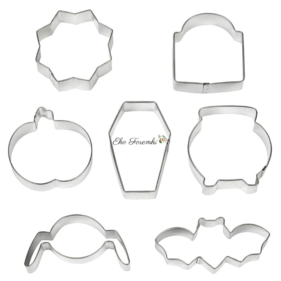 Zestaw upiornych foremek to doskonała propozycja dla miłośników tego upiornego święta. W skład zestawu wchodzi 7 różnych foremek wykonanych ze stali nierdzewnej, co zapewnia trwałość oraz łatwość w użytkowaniu. Znajdziesz tu wykrawacze w kształcie przerażającego pająka, tajemniczej pajęczyny, mrocznego nietoperza oraz dyni. Dodatkowo znajdziesz również foremki w kształcie nagrobka, kociołka czarownicy i trumny, które idealnie oddają klimat tego święta.