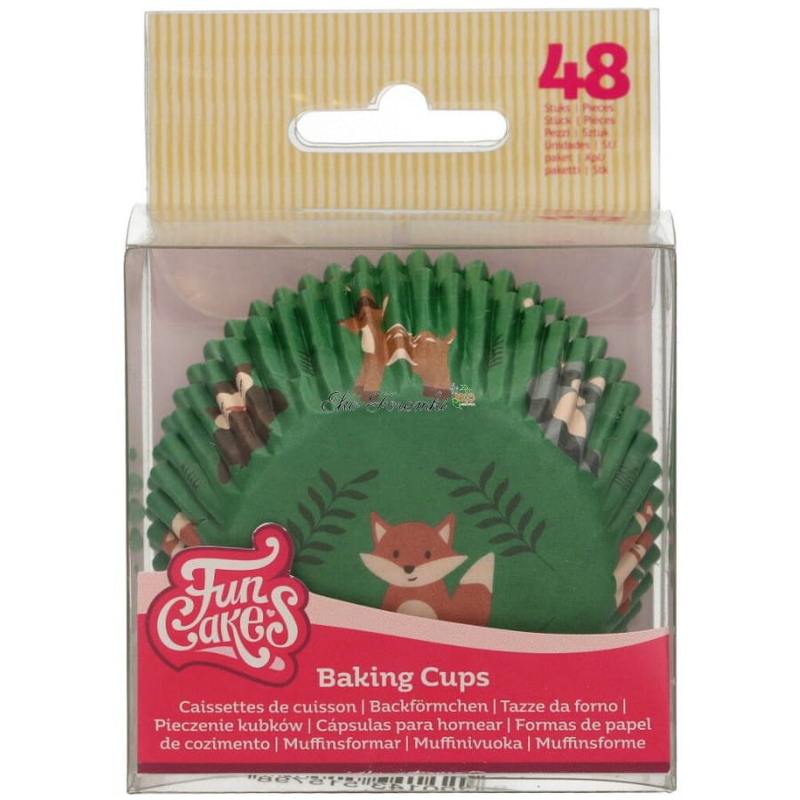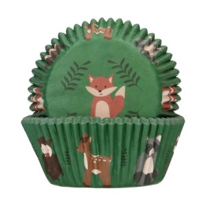 W opakowaniu znajduje się 48 sztuk pergaminowych foremek do pieczenia smakowitych muffinek. Zestaw zawiera foremki w zielonym kolorze z wizerunkami leśnych zwierząt. Rozmiar standardowy 5 cm (średnica dna foremek).